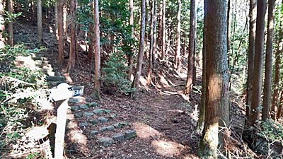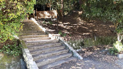 | 「大津市歴史博物館」の左手奥に行くと、この石段がある。ここから山道へ入って行く。 |