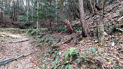 | 道なりに進むと丁石が・・・十六丁と刻まれている。この立木観音北参道は二十丁あります。 |