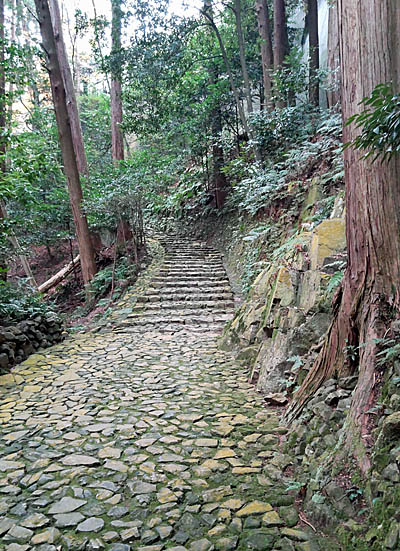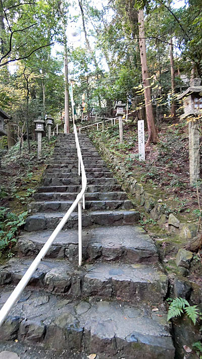 下山は急な石段の参道(表参道)を一気に下る。。 |