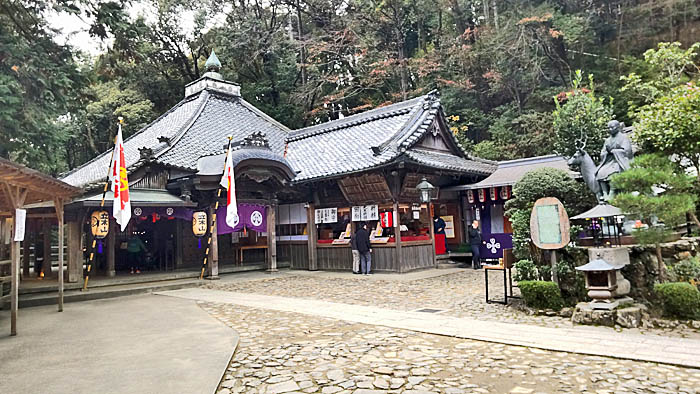 | 汗びっしょり、約50分の登りで境内に到着しました。 |