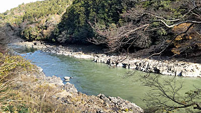 | 一気に下ること約15分で瀬田川が流れる道に・・・。 |